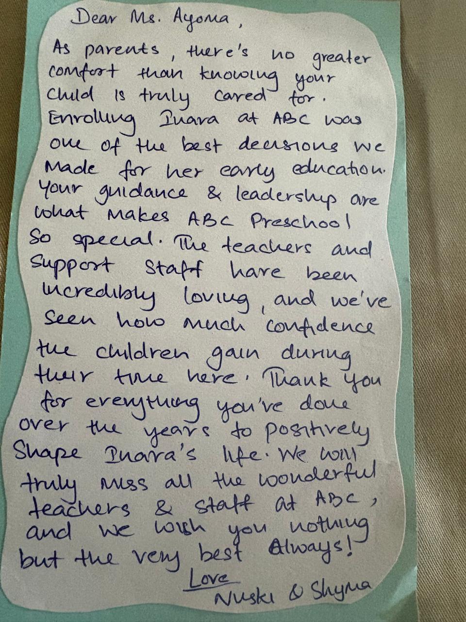 As parents, there’s no greater comfort than knowing your Child is truly cared for. Enrolling Inara at ABC was one of the best decisions we made for her early education. .....